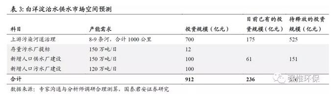 1)根據(jù)我們之前的測算,保定污水處理廠的提標改造+新增人口的供水及污水設施投資空間約為212億。